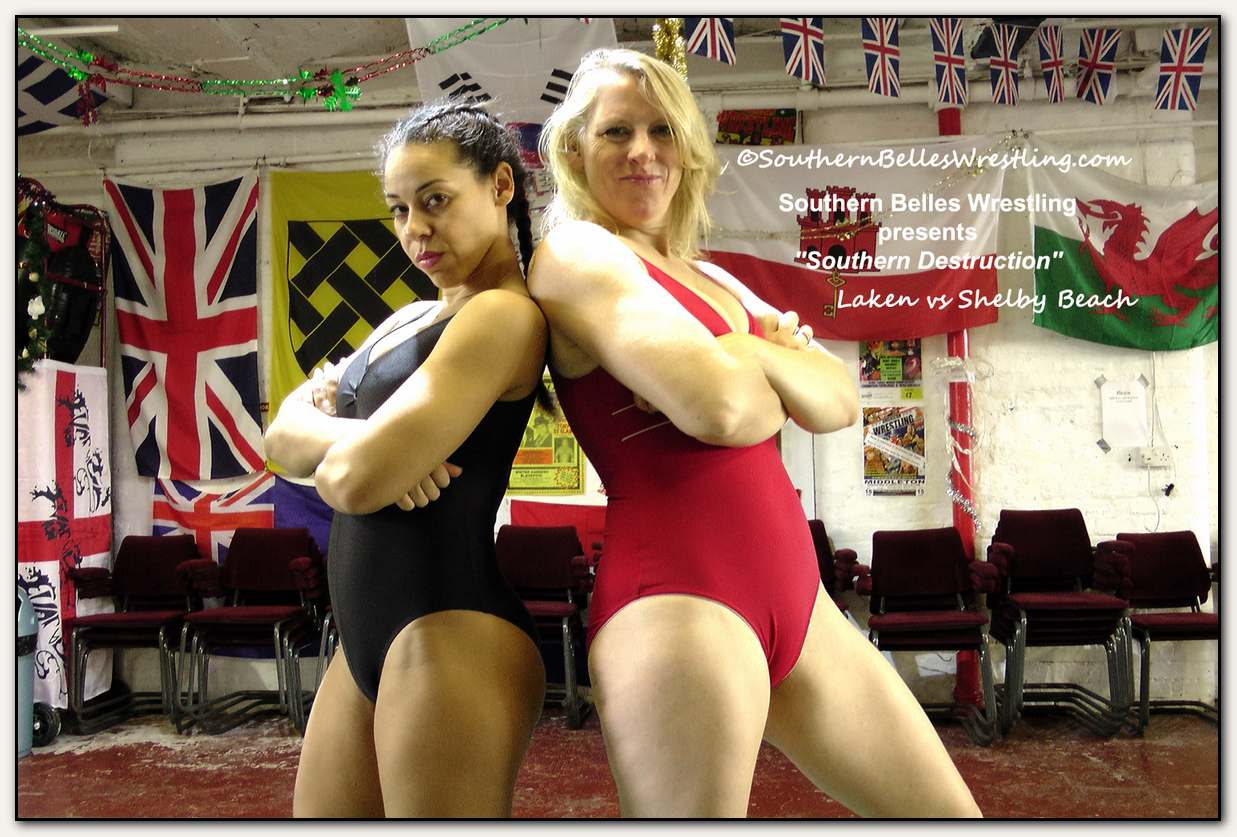 As Laken and Shelby both possess two of the most powerful sets of sculpted gams in the Southern Belles this has the makings of a scissors contest to end all scissors contests! And indeed the two beauties brutally punish one another with their stems their thighs mercilessly crushing waists and heads time and again. And when one isn’t suffering in a scissorhold she’s on the offensive attacking her opponent’s own legs trying to weaken her rival’s best weapon!